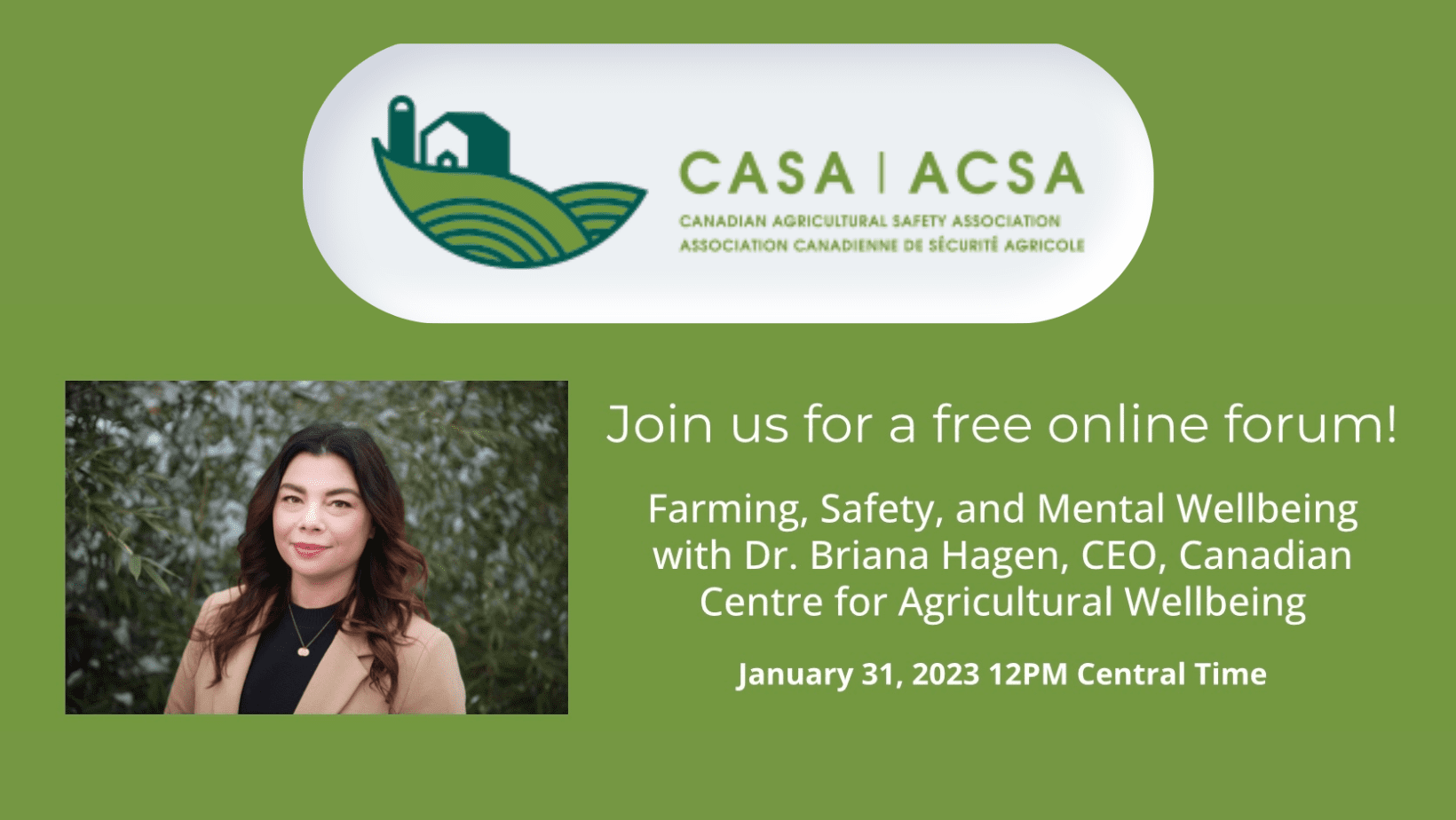 VirtualMental wellbeing and safety are inextricably linked. Dr. Briana Hagen will bring insight and information on the launch of the newly launched Canadian Centre for Agriculture Wellbeing, the latest mental health research, and discuss the importance of understanding mental health and how it relates to farm safety. About the speaker, Dr. Briana Hagen: Dr. Briana […]